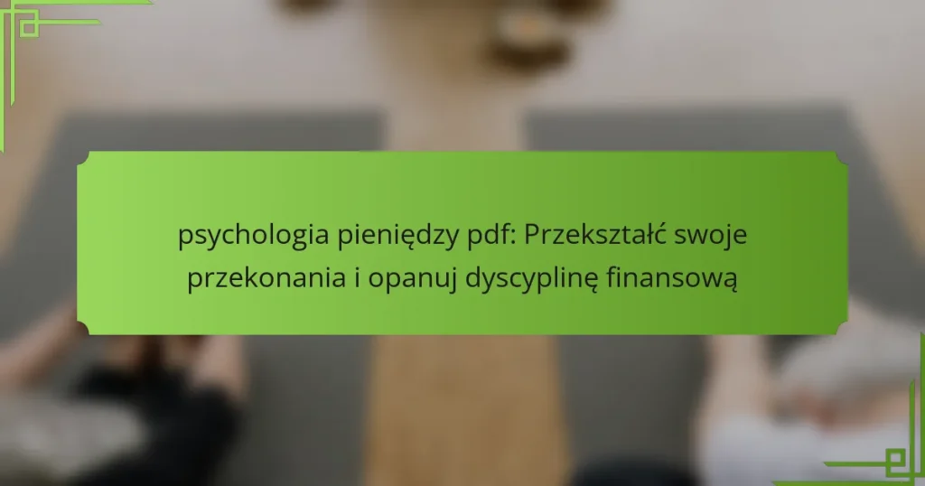 Przekształć swoją relację z pieniędzmi, przekształcając swoje przekonania i opanowując dyscyplinę finansową. Ten artykuł bada podstawowe zasady przekonań dotyczących pieniędzy, porównuje pozytywne i negatywne perspektywy oraz podkreśla rzadkie cechy, które przyczyniają się do budowania bogactwa. Dodatkowo, akcentuje znaczenie odporności emocjonalnej i samokontroli w planowaniu finansowym. Na koniec dowiedz się, jak przyjąć nastawienie zorientowane na rozwój, aby osiągnąć swoje cele finansowe.